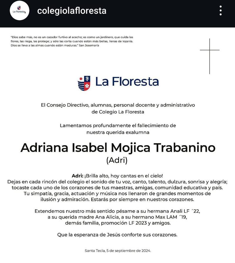 “Hoy estoy aquí y mañana... mañana no lo sé'’. La cantante extranjera Adri Mojica murió a los 19 años mientras estaba en España, se desconoce si la originaria de El Salvador se encontraba en el país europeo de vacaciones, por trabajo o residía en Madrid, noticia confirmada por familiares en las redes sociales.