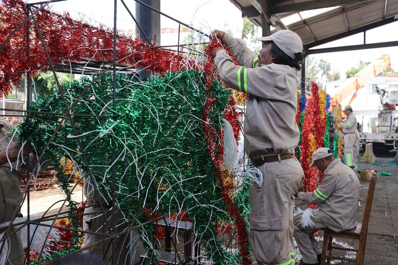 Las figuras fueron elaboradas por 110 trabajadores del Gobierno de la Ciudad de México, quienes realizan un trabajo artesanal para armar las estructuras metálicas y tejer con escarcha cada una de las figuras.