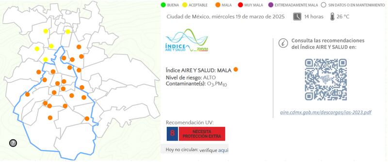 Esta es la calidad del aire en CDMX y Edomex el miércoles 19 de marzo