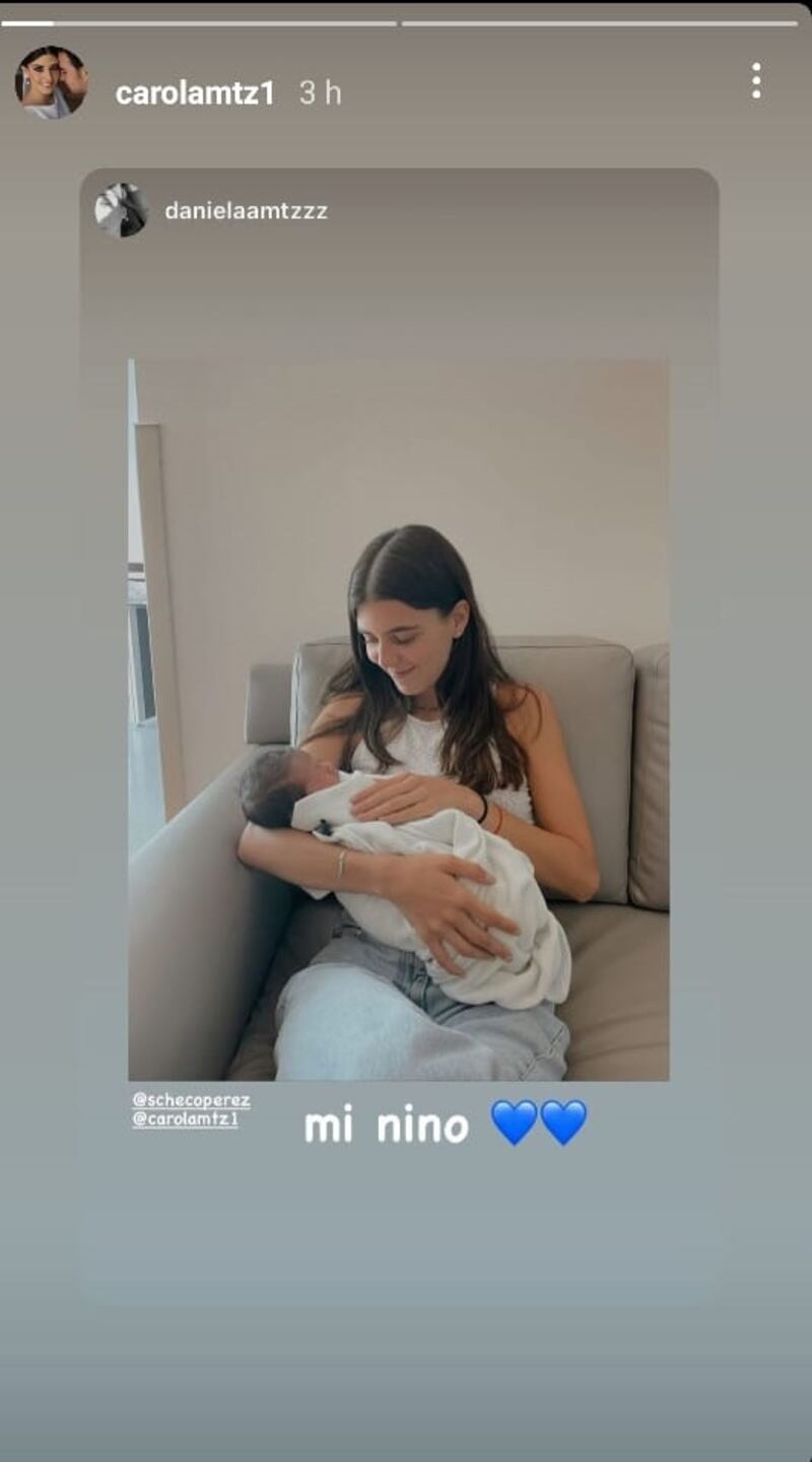En redes sociales, Carola compartió historias de Instagram de los primeros momentos al lado de su hijo, en una de las fotografías aparece con el piloto tapatío de 32 años, sonrientes, y describe: “Bienvenido, Emilio, te amamos”.