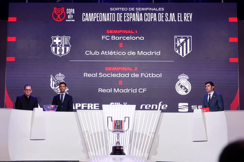 Ya están definidas las semifinales de la Copa del Rey: el sorteo celebrado este miércoles resultó con los duelos de Barcelona vs. Atlético de Madrid y Real Sociedad vs. Real Madrid.