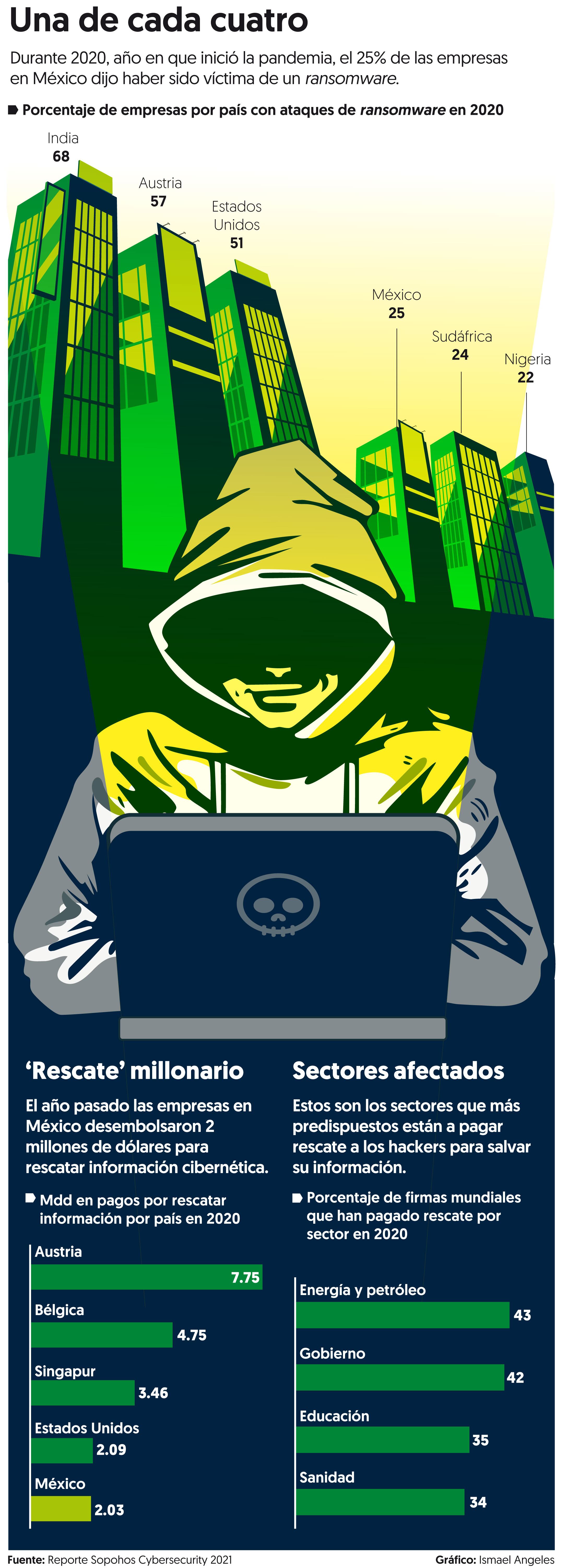 Además en 2020, el 25 por ciento de las empresas en México dijo haber sido víctima de un ransomware, es decir, robo de información, debido a que el teletrabajo provocó que las operaciones de las empresas fueran más vulnerables a hackeos, de acuerdo con el reporte “El estado del ransomware 2021” de la firma de ciberseguridad Sophos.
