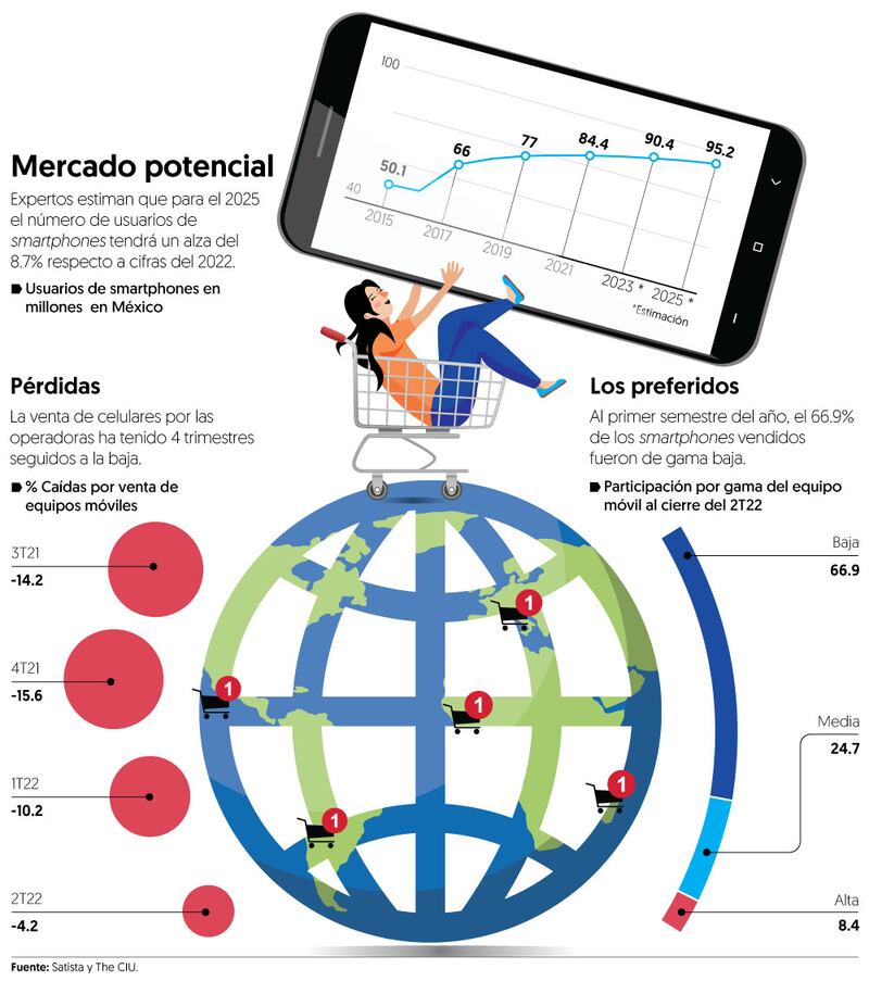 “En el país, cada año se venden aproximadamente 30 millones de smartphones, pero antes de la pandemia, 65 por ciento de estos equipos se adquirían directamente con los operadores; sin embargo, en los últimos dos años, los operadores móviles han perdido hasta un 15 por ciento en la participación de mercado”, señaló Rolando Alamilla, gerente de investigación de mercados de la consultora The Competitive Intelligence Unit (The CIU).