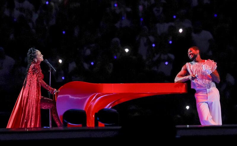 Alicia Keys apareció de rojo brillante frente a un piano del mismo color para su interpretación de ‘If I Ain’t Got You’, que se transformó en ‘My Boo’.