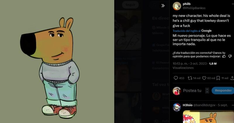 El creador del ‘perrito chill y de cojones’ es el artista Phillip Banks, quien ‘lo dio a luz’ el 4 de octubre de 2023 en X (antes Twitter) bajo la leyenda: “No le da importancia a nada”. Y aunque entonces hubo quienes se identificaron con la ilustración, su viralidad llegó hasta 2024.