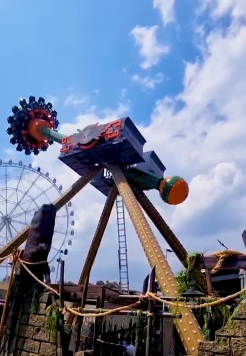 Dará giros de 360 grados mientras el mismo péndulo gira en su propio eje, por lo que se le considera una de las más extremas en el parque.