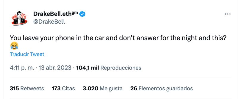 “Dejas tu teléfono en el carro, no contestas por la noche y después esto?”, escribió en su cuenta de Twitter.