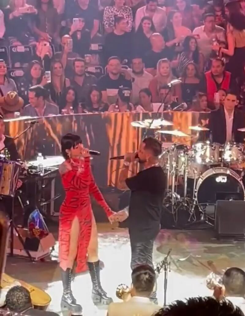 Cazzu asistió como parte de la audiencia de Nodal, hasta que el mexicano la invitó al escenario para que cantaran en dueto ‘Si te falta alguien’: “Conmigo no te va a faltar amor / Y si te falta lo hacemos... / Conmigo no te va a faltar amor”.