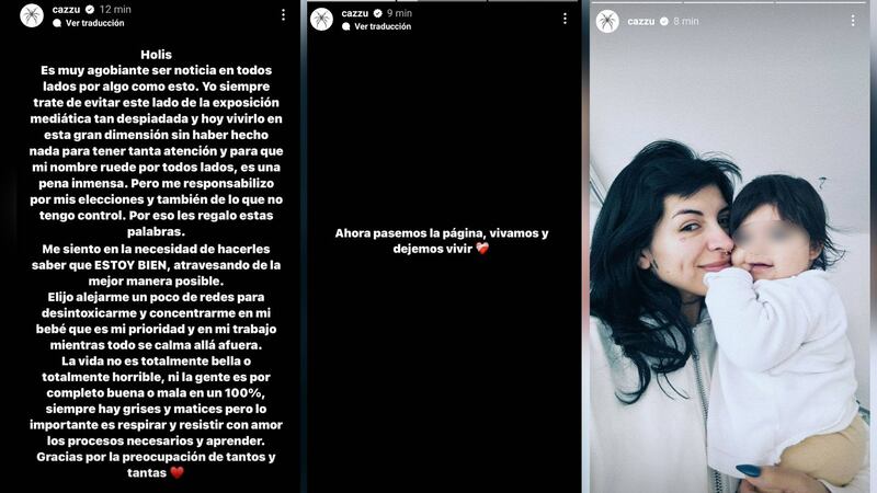 Cazzu agregó que se va a alejar de redes sociales para desintoxicarse y centrarse en su trabajo mientras las cosas se calman y en especial en Inti, la hija tuvo con Nodal, quien nació hace menos de un año (14 de septiembre de 2023): “para concentrarme en mi bebé, que es mi prioridad”.