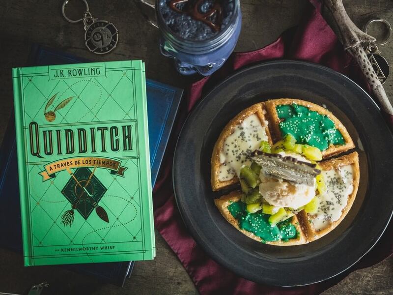 No faltan las crepas, hamburguesas, chapatas y waffles decorados según los colores de tu casa, galletas con las figuras de los personajes preferidos y souvenirs, así como los libros de Harry Potter, incluso el de Animales Fantásticos y dónde encontrarlos, para repasar algunos encantamientos mientras alimentas el antojo.