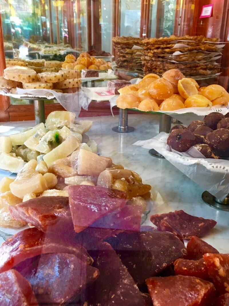 Preparan camotes, cocadas, reinas, palanquetas, frutas cubiertas, caramelos, charamuscas, chocolatinas, puerquitos de horno, pepitorias, queso de tuna, el huesito de Día de Muertos, las velas de almendra de Navidad y un sabroso etcétera.