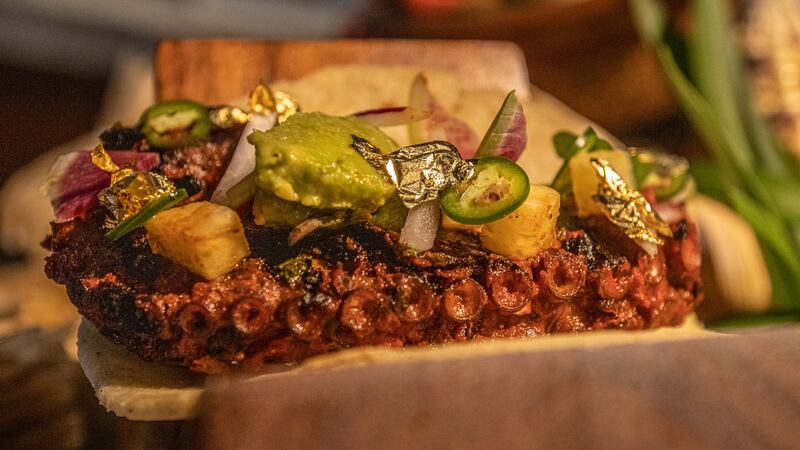En su menú hay otras opciones como los tacos de pulpo con hojuelas de oro.