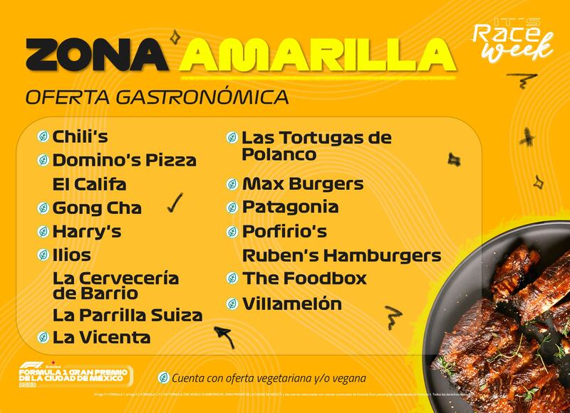 En ambos casos, los organizadores del Gran Premio de México 2023 publicaron la lista de restaurantes que tendrán presencia en el Autódromo Hermanos Rodríguez durante el fin de semana.