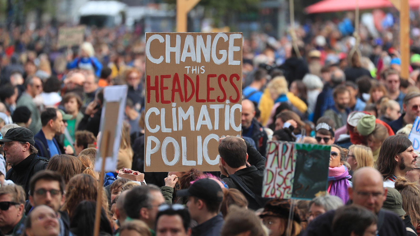 Manifestantes sostienen pancartas durante la protesta de la Global Climate Strike en Berlín, Alemania. / Bloomberg