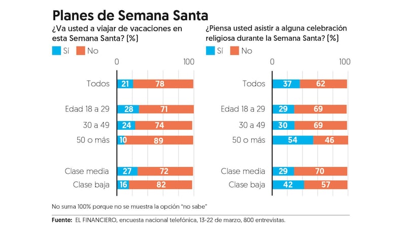 Pero la encuesta sugiere que, tanto o más que la religión, las actividades de esta Semana Santa lucen más ancladas en la edad y en la clase social.