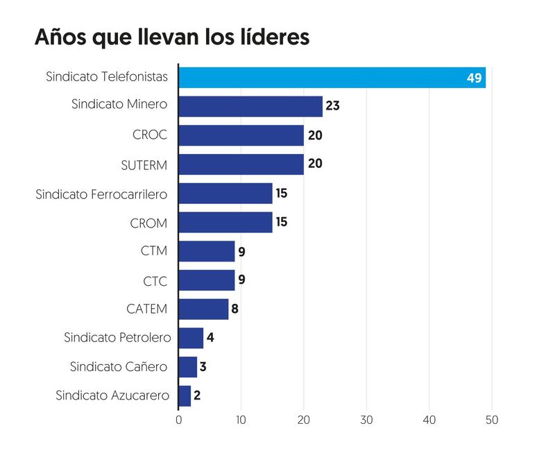 Esta situación pone sobre la mesa cuestionamientos sobre los mecanismos de democracia interna y la posibilidad real de alternancia dentro de los sindicatos. Es también un dato relevante el que los líderes que llevan poco tiempo en el cargo ocupan esa “silla” dado el fallecimiento en el puesto de su sucesor, quienes, como el Papa en la Iglesia Católica, dejan de ser secretarios del sindicato hasta que fallecen; solo que en la iglesia, como en las monarquías, no hay este discurso de que los puestos se renuevan…