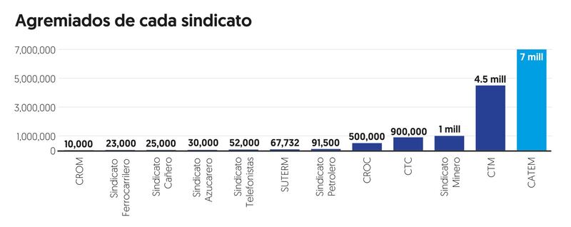 La relevancia de este fenómeno se amplifica al considerar el alcance de estas organizaciones. En promedio, cada sindicato concentra más de 1.18 millones de trabajadores afiliados, lo que implica que las decisiones de un número reducido de dirigentes influyen de manera directa en las condiciones laborales, la representación y la defensa de derechos en distintos sectores laborales.