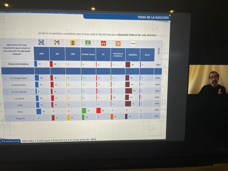 “Pero al final, los votos de oposición están entre economía e inseguridad y el voto para el partido en el gobierno, por Morena, tiene que ver con corrupción”.