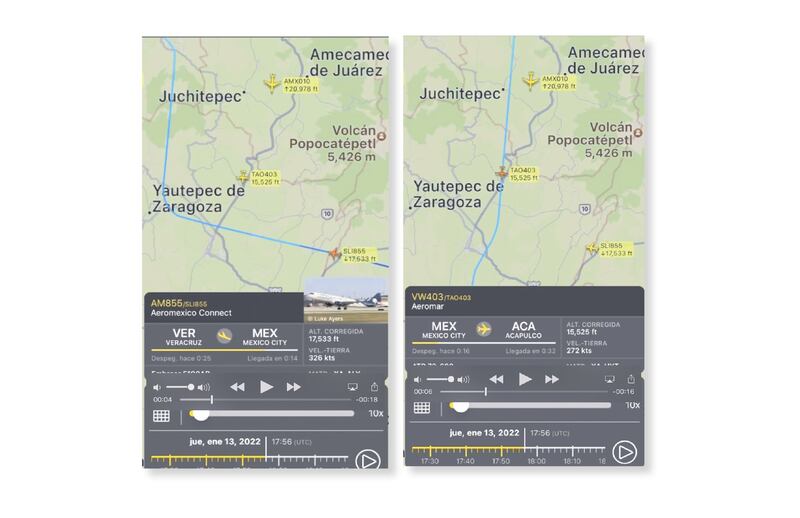 En este último incidente tengo parte del audio de las comunicaciones piloto-controlador, donde, con voz alterada, el controlador le indica al AM855: “Costera 855, ascienda de inmediato a uno siete mil pies, tiene tráfico a las 12, tres millas”. Sin embargo, Costera 855 no responde, por lo que el controlador vuelve a decir: “Ocho cinco cinco”; en ese punto el piloto de Costera responde: “855 uno siete mil”, y el controlador, con voz aún más alterada, repite: “De inmediato, tiene tráfico tres millas adelante, cruzando trayectoria uno seis mil pies”.
