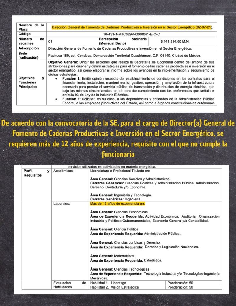 Es decir, cuatro años de experiencia laboral previa y ocho menos de lo que exige la convocatoria para aspirantes de la dependencia. Su perfil de LinkedIn la ubica también en el Instituto Mexicano del Petróleo, que, aunque sumarían otros cuatro años, no abonan para su cargo actual.