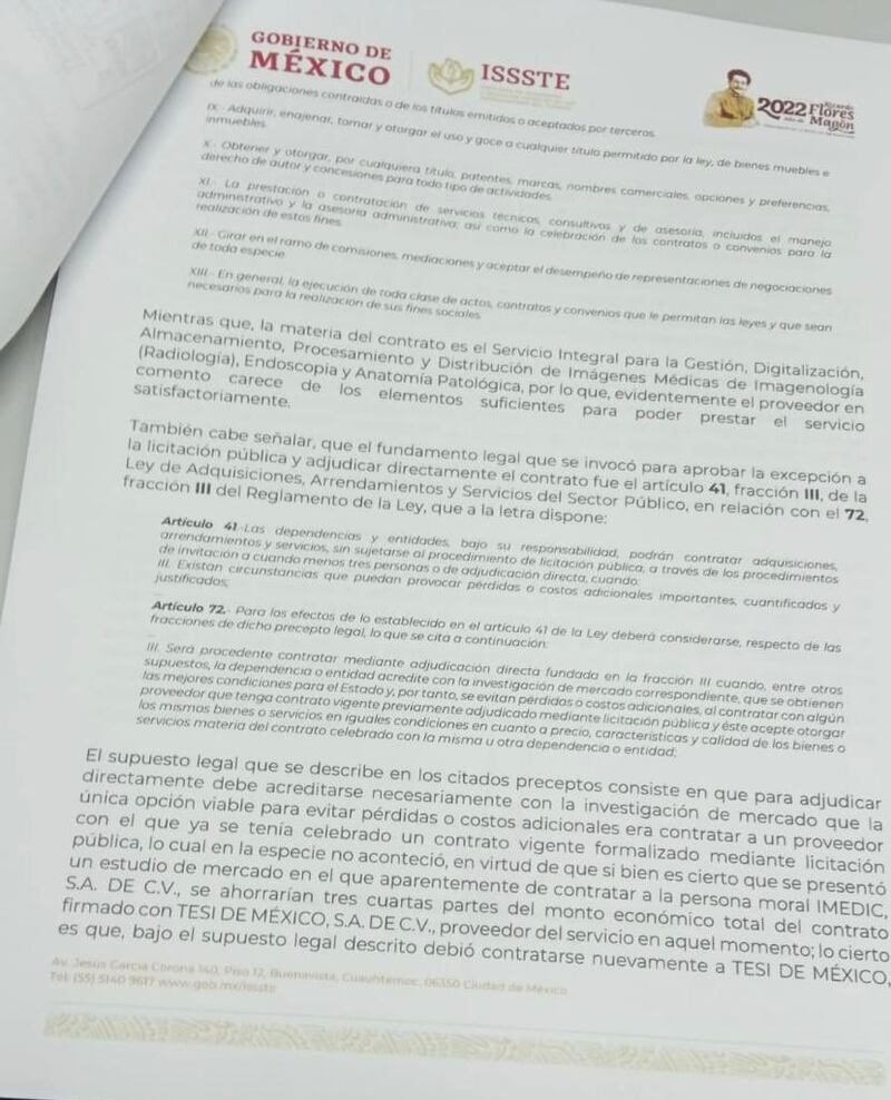 “Muchos funcionarios hicieron negocio al amparo del poder en el ISSSTE y está probado”.- Como Almendra Ortiz hoy en día, adjudicando en asignación directa el contrato a Imedic, compañía no calificada para prestar el servicio y, como dice Zenteno: está probado, lo tengo probado.