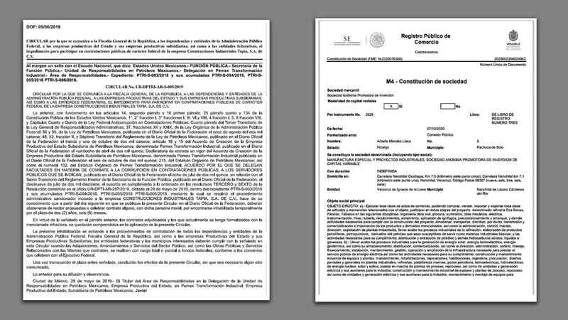 Miren: en 2019, la filial de Pemex, PTI Infraestructura de Desarrollo, le adjudicó a Mexicana de Recipientes a Presión, propiedad de Juan Carlos Tapia, Gilberto Tapia, Selene Martínez Abarca y Carlos Morín Montes, este último identificado como director jurídico de Citapia, el contrato PTI-ID-S-007/2019 para el paquete 6 de la refinería de Dos Bocas por 78.4 millones de dólares.