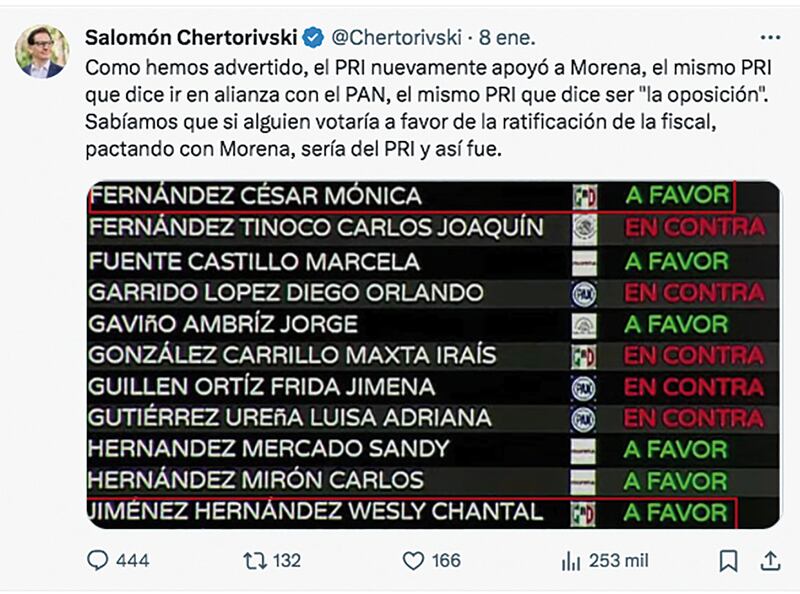 Burdamente, el fin de semana previo a la votación definitiva, las redes explotaban porque la fiscalía había levantado, ya que no llevaban orden de aprehensión, al excoordinador de los priistas de la CDMX, Tonatiuh González. Fue tal el escándalo, que la propia fiscalía tuvo que sacar un comunicado diciendo que sólo lo habían presentado ante el MP.