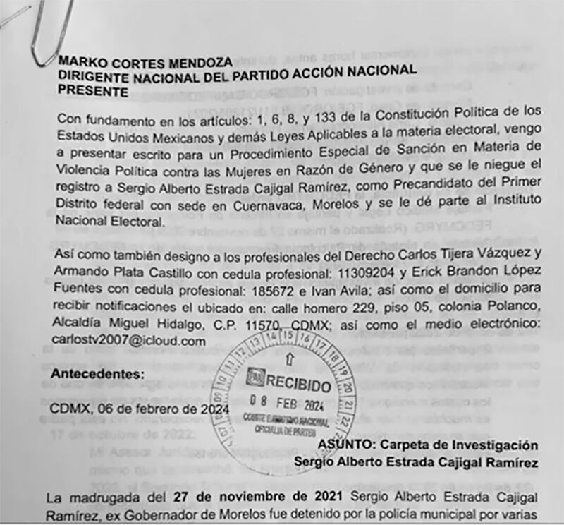 Y ya que hablo de hombres violentadores de mujeres, cómo dejar de lado a Sergio Estrada Cajigal, exgóber de Morelos, mejor conocido por su protagónico en el cortometraje del ‘Helicóptero del Amor’ y hoy, increíblemente, aspirante a una diputación federal por Morelos. Marko Cortés, este hombre cuenta con al menos dos carpetas en su contra. No sólo fue violento con su exprometida Carla Carrillo Hervert, sino también con su exesposa Maica Borbolla.