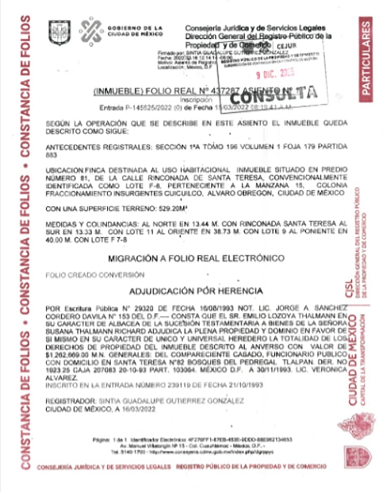 Para corroborar el dato me di a la tarea de conseguir el folio del registro público y no hay duda de que así es.