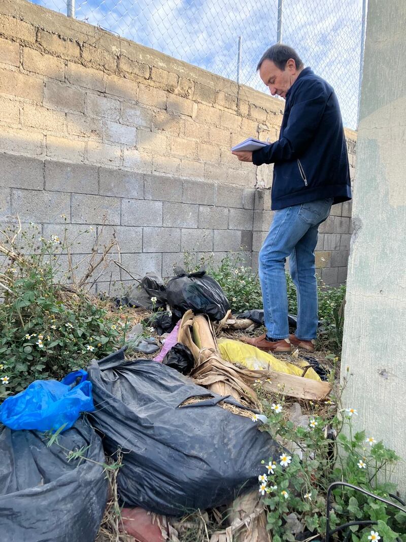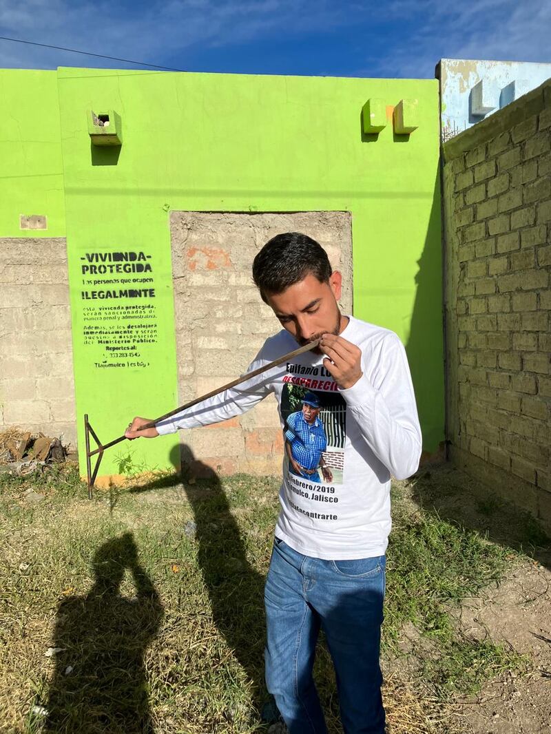 En el patio de la casa donde estoy, a la que el colectivo llegó por el perro que traía una mano humana, Armando Villanueva entierra una varilla en un promontorio de tierra: “Ves, aquí está hueco. Aquí escarbaron”. Huele la punta de la varilla y dice que no, que no se percibe nada anormal. Va un poco más allá.